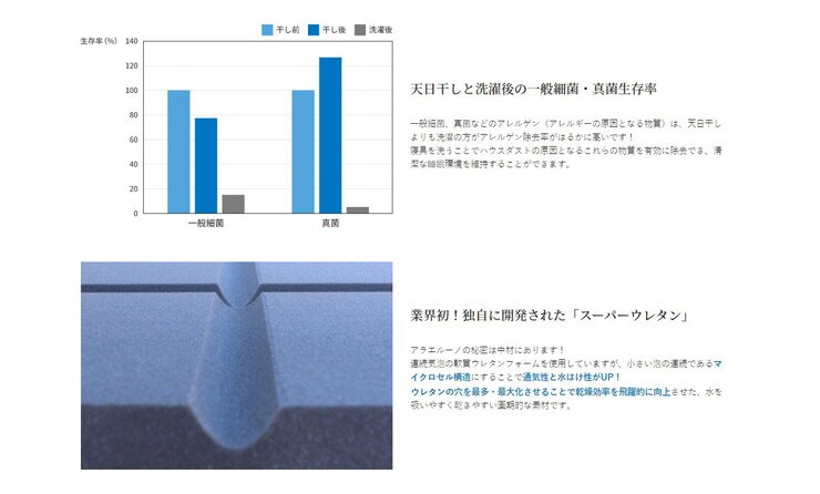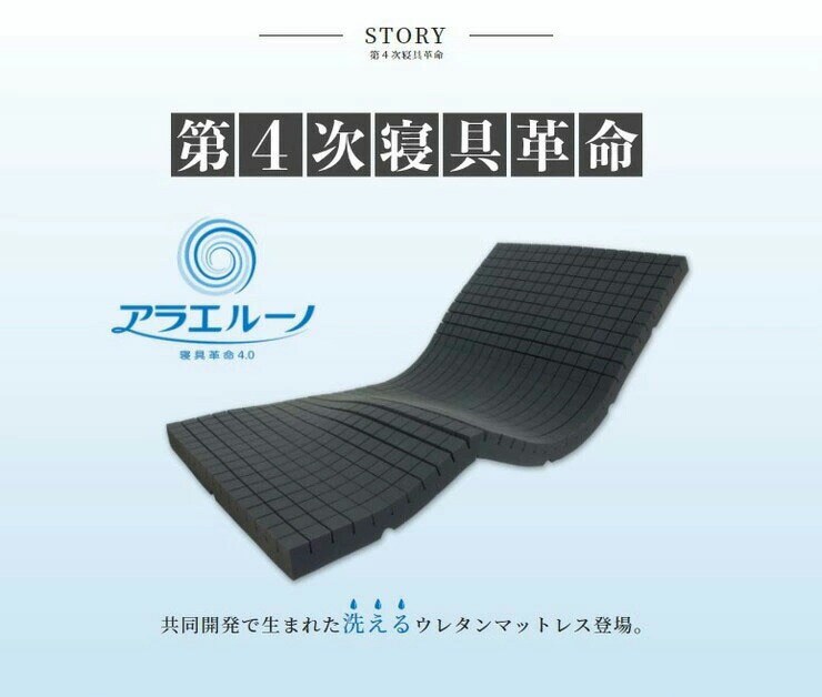 アラエルーノはフトン巻きのジローが生み出したフトン巻きの技術を利用して開発され、折りたたんで洗濯機に入れることでマットレスを丸洗いできます!
