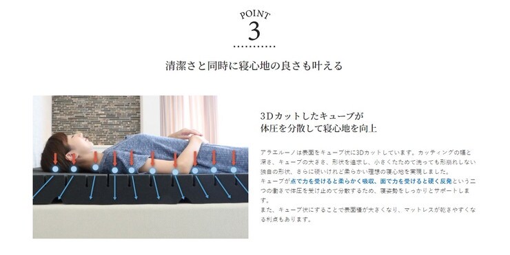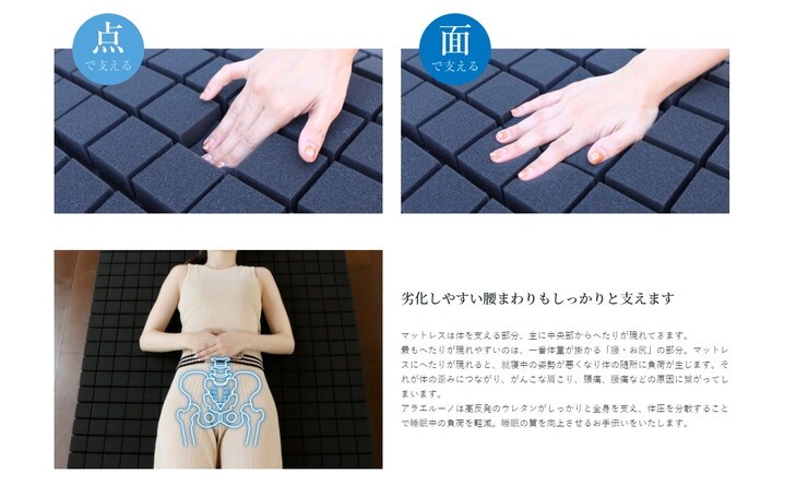 578個のキューブが体の重さと部位の大きさを検知し理想の体圧分散を行います。