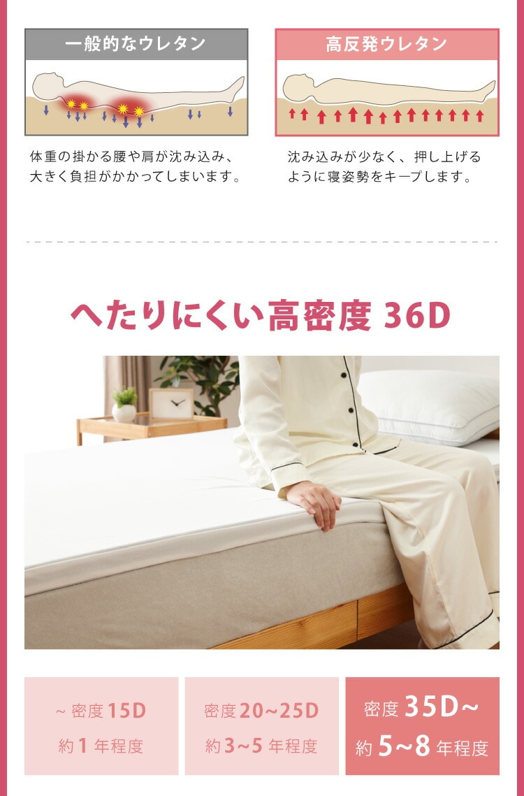 また、高密度36Dのウレタンを使用。通常5~8年の耐久性があります。