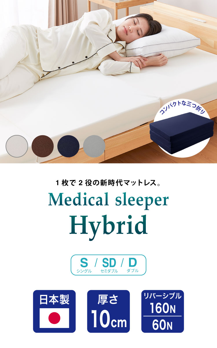 マットレス 日本製 シングル セミダブル ダブル メディカルスリーパー ハイブリッド 三つ折り 厚さ10cm 高反発 低反発 国産 ウレタン 体圧分散 硬め 柔らかめ【送料無料】