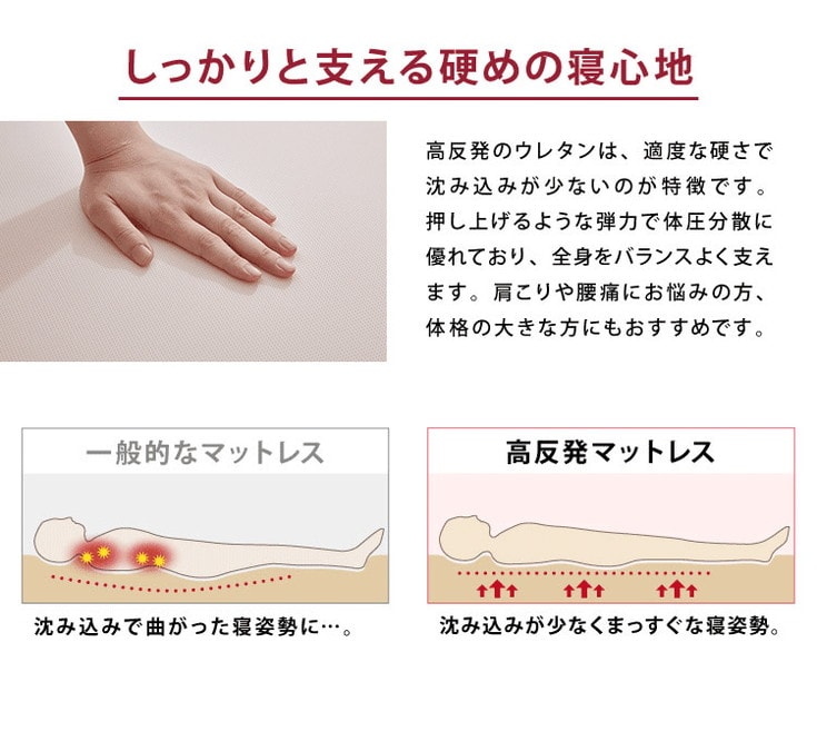 高反発か低反発で悩んでいたお客様も、この1枚で悩むことなく、ご使用いただくことができます。