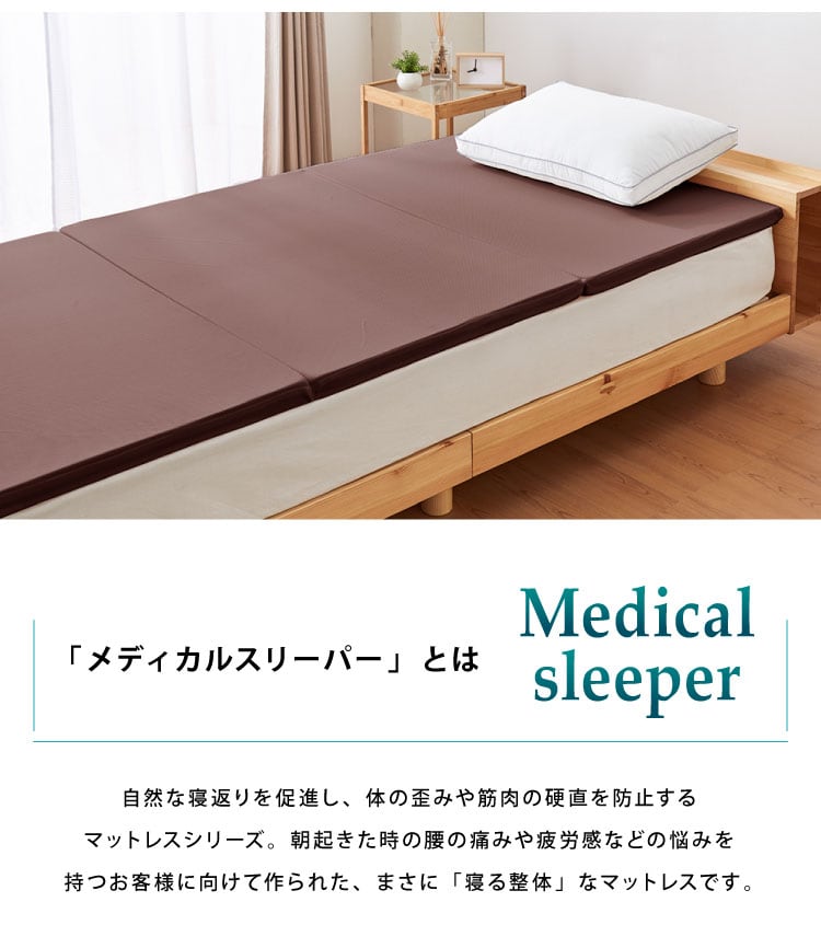 日本製 メディカルスリーパー ネオブリーズ シングル セミダブル ダブル 三つ折り マットレス 穴あき 穴あけ 透湿 調湿 むれ ムレ防止 高反発 かため 高密度 体圧分散 シングルマットレス トッパー【送料無料】