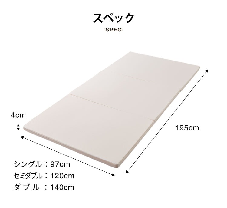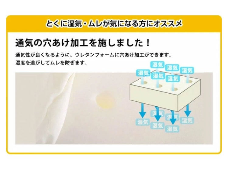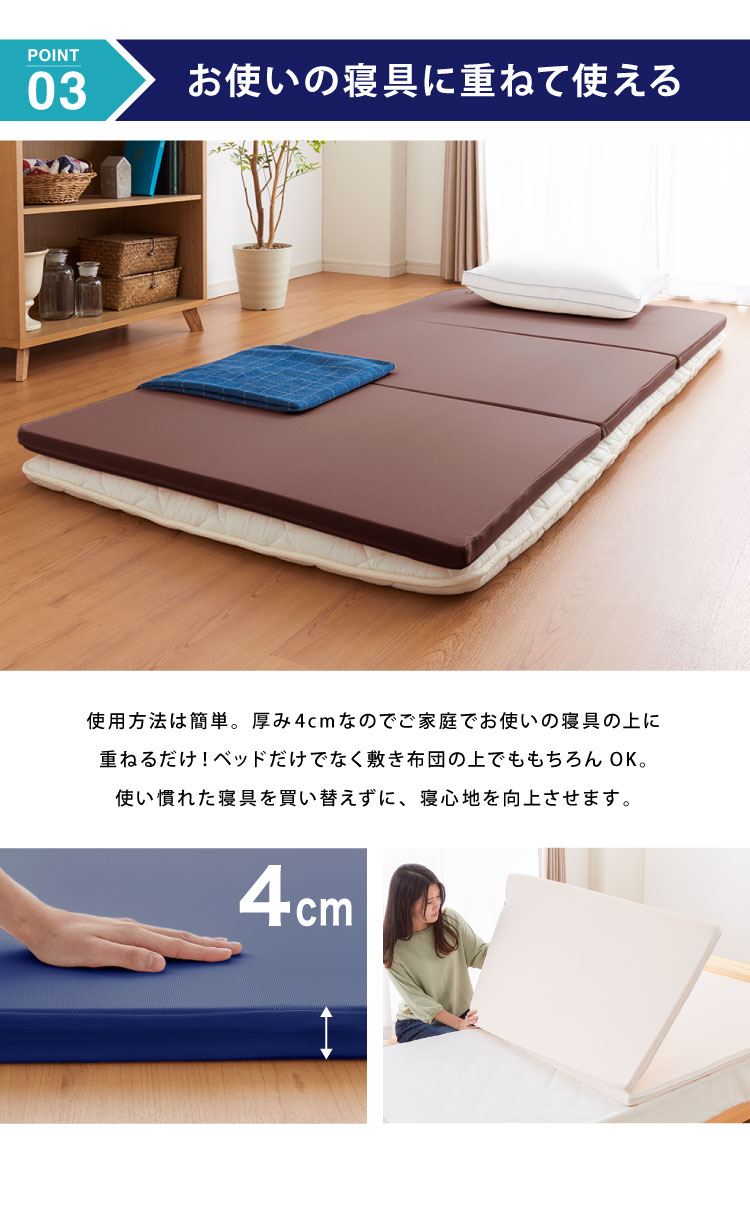 日本製、メディカルスリーパー、ネオブリーズ、シングル、三つ折り、マットレス、穴あき、穴あけ、透湿、調湿、むれ、ムレ防止、高反発、かため、高密度、へたりにくい、夏用、体圧分散、耐圧分散、国産、シングルマットレス、トッパー、オーバーレイ、厚さ4cm、洗えるカバー、カバーが洗える