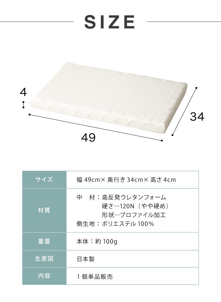 【単品】 日本製 ウレタン まくらシート 49×34 1枚 ピロー まくら 高反発 ストレートネック 枕 長方形 国産 プロファイル 体圧分散 クッション 低い 低め 薄型【送料無料】