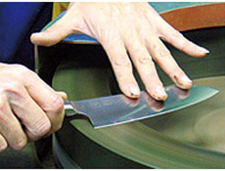 刃身の独特の波紋はダマスカス模様と呼ばれ、同じものは二つとないもの。関市の職人が手作業で刃付けをした逸品です。