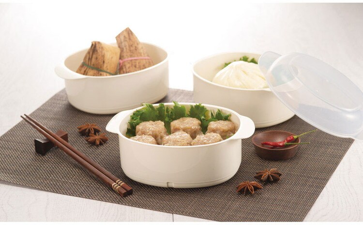 レンジで簡単。ふっくら本格点心が楽しめます。蒸気の力で、ふっくらふわふわの蒸し料理に仕上げます。食洗機OK。