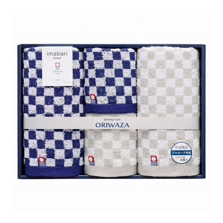 ORIWAZA 今治織技ジャカード市松 フェイス2P・ウォッシュタオル2P IWT04248MX