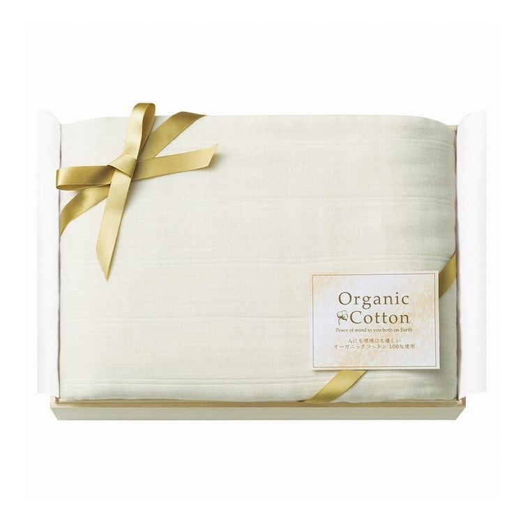 三年間化学薬品を使用していない土壌で栽培された「オーガニックコットン」を使用した毛布です。綿本来の生成り色の毛布は、軽く柔らかな肌ざわりで保温性・保湿性にもすぐれています。高級感のある木箱に入れてお届けします。