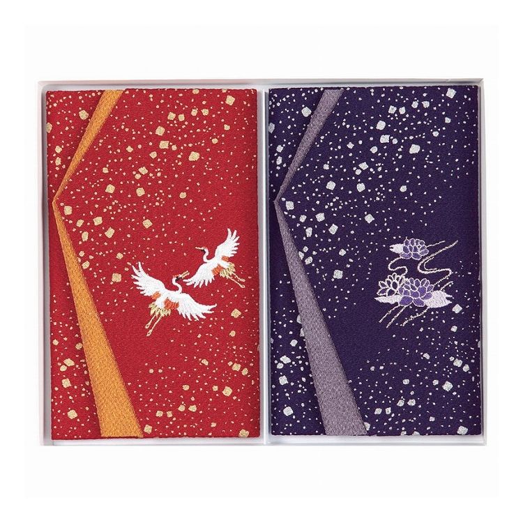 刺繍に加え鮮やかな金彩プリントを施した、金封ふくさの慶弔セットです。シーンに合わせてお使い分けいただけます。