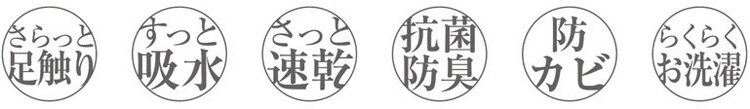 「吸水速乾」のポリエステル糸と「防臭」のアクリル糸の「2本」の糸をツイストして組み合わせたコシがあり、さらっと感が持続するバスマット。マット裏にはカビを抑制する「防カビ機能」をプラス。一見すると普通のバスマットだけど名前の通り「実はすごいバスマット」です。