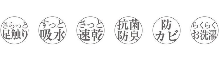 「吸水速乾」のポリエステル糸と「防臭」のアクリル糸の「2本」の糸をツイストして組み合わせたコシがあり、さらっと感が持続するバスマット。マット裏にはカビを抑制する「防カビ機能」をプラス。一見すると普通のバスマットだけど名前の通り「実はすごいバスマット」です。