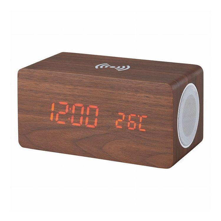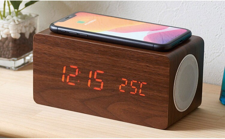 ブルートゥーススピーカー ワイヤレス充電機能付クロック 6183-23