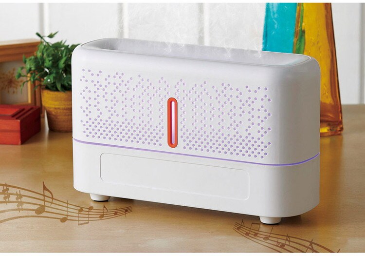 ワイヤレススピーカー、イルミネーション機能までついたアロマ対応の加湿器です。加湿器は水が無くなると自動停止する安全設計。お好みの音楽、香り、イルミネーションで最高の癒しを満喫できます。
