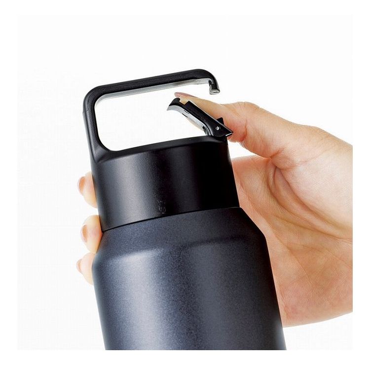 炭酸飲料を冷たいまま持ち運べる、真空2重構造のステンレスボトル。蓋部分のガス抜き構造により、ビール、炭酸水などを冷たいまま持ち運び可能。持ち運びに便利なカラビナ付きハンドル。氷を入れても500mlドリンクが入る、大容量600mlサイズ。