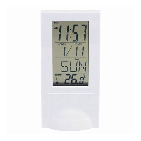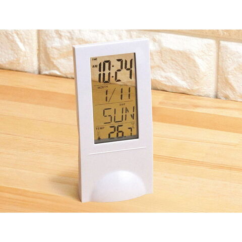 時刻が浮いて見える-ちょっと不思議な置時計。背面のボタンで時間やアラームをセット。お部屋になじむシースルーディスプレー。時刻・日付表示・アラーム・タイマー・温度計。