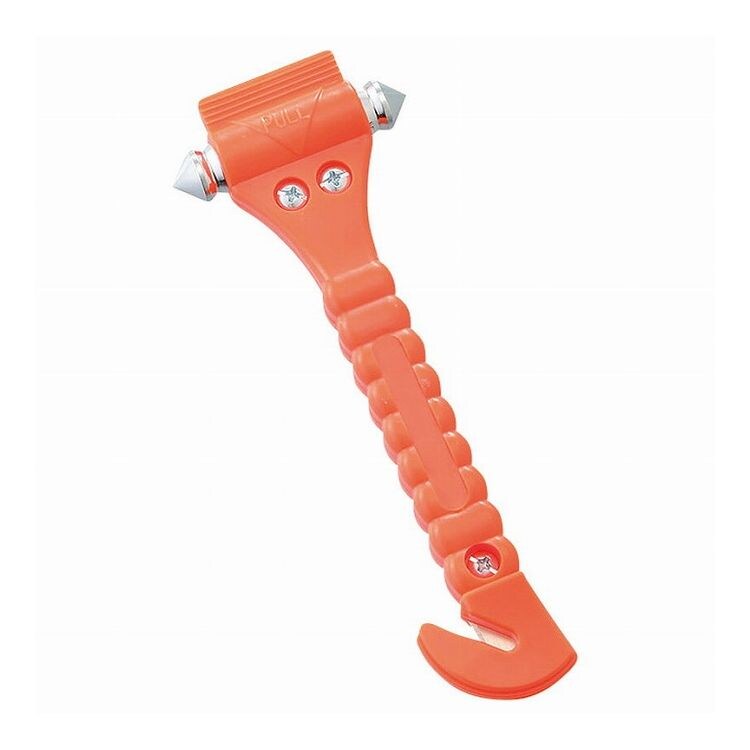 災害時や緊急時に自動車のガラスを破壊し脱出する為のハンマーです。シートベルトカッターも付いていてベルトロック時に使用できます。JIS-D5716製品規格適合品。