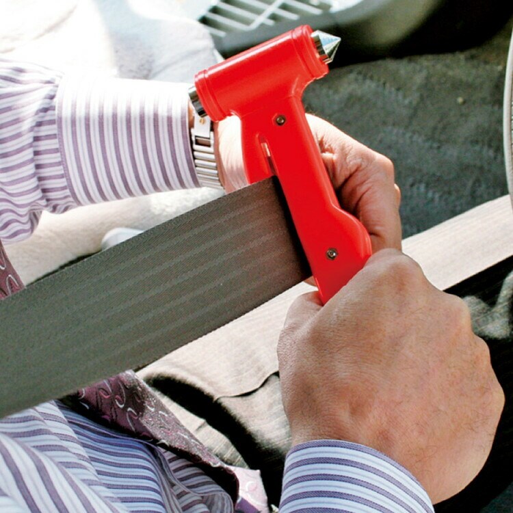 車内に閉じ込められた際の脱出に役立つ緊急脱出用ハンマーです。シートベルトカッターも搭載しておりますので、故障等で外れなくなったシートベルトを切断することも可能です。