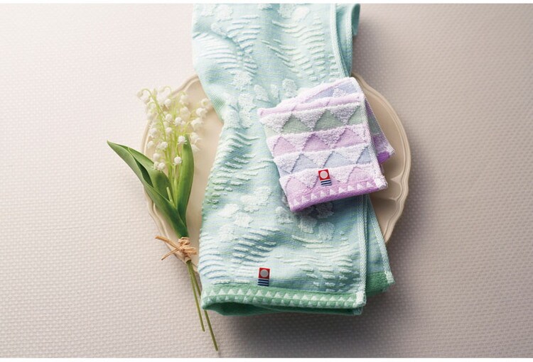ころんとした形がかわいらしい「すずらん」とすっきりと落ち着いた色合いの「さんかく模様」の今治タオル。