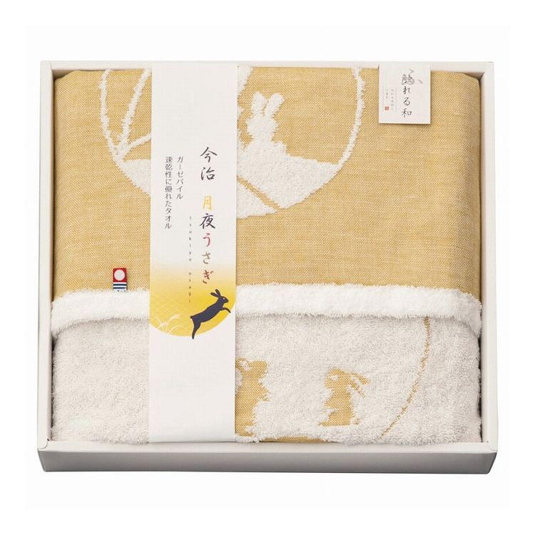 月夜に浮かぶ「うさぎ」を今治のガーゼ織ジャガード技術により表現しております。吸水・速乾性の良い今治タオルを感謝の気持ちを込めて贈ります。