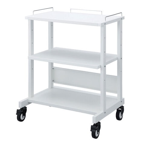 ●検査機器、操作機器、レーザープリンターなど一式を収納し、移動させて使用できるラックです。※重心位置が高くなった際、段差などを乗り越える場合は転倒にご注意ください。