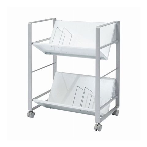 デスク周りで書類整理に最適なファイルワゴン。2段収納・斜め棚板タイプ。