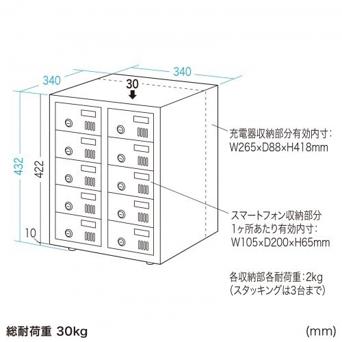 ●10台のスマートフォンを個別に管理できる保管庫です。