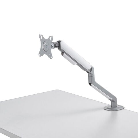 机上面を有効活用できる、水平垂直多関節液晶モニターアーム。画面の位置を上下左右自由自在に。シルバー。