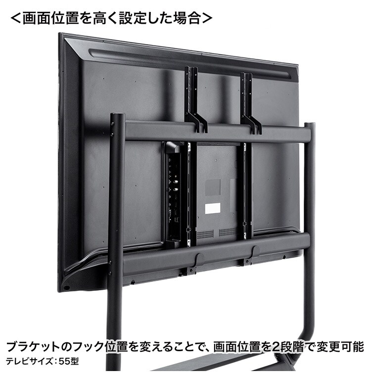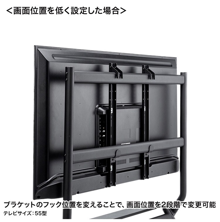 ・画面位置はブラケットのフックの位置で変更することができます(2段階)。