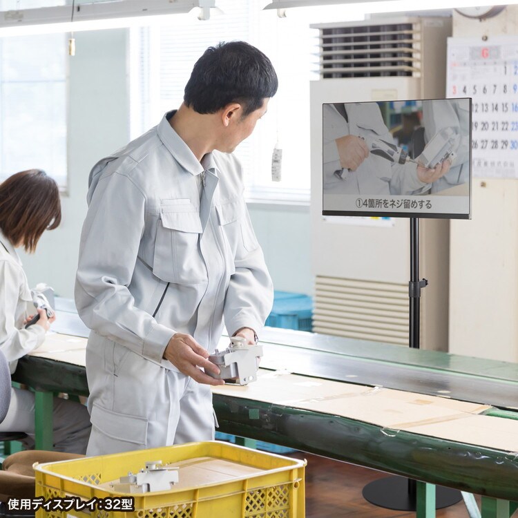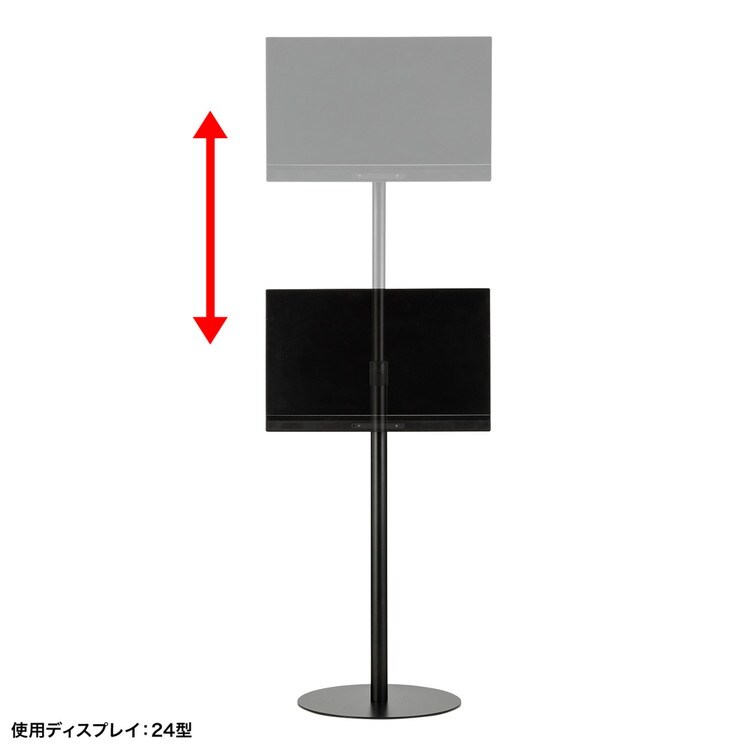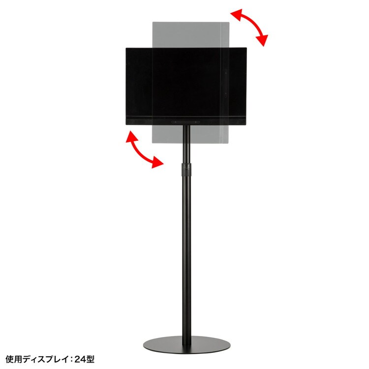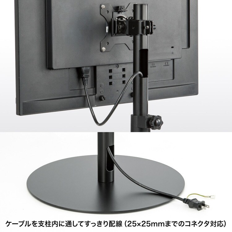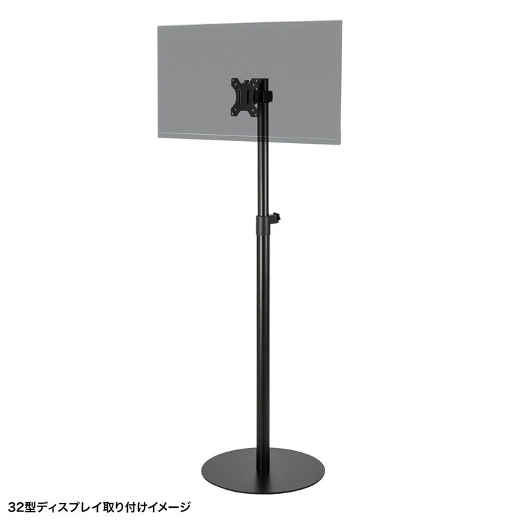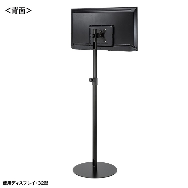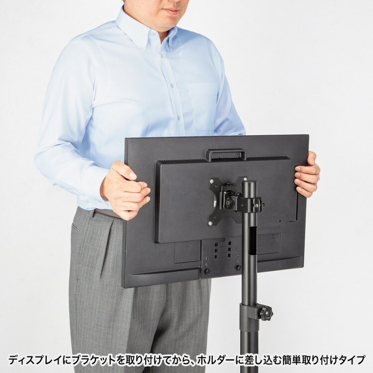 直径400mmの台座でしっかりと自立します。<備考>※先にディスプレイにブラケットを取り付けてから、スタンドのホルダーに差し込む簡単取り付けタイプです。ディスプレイを支えながらネジで固定する大変さがなくなります。