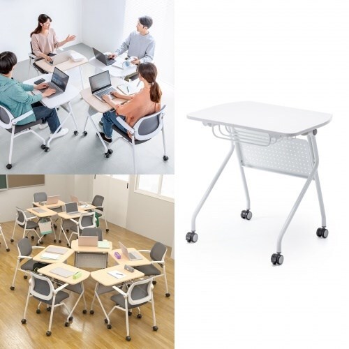 グループワークでも講義式授業でも使いやすいアクティブ・ラーニングデスク。幅730×奥行き500mm・ホワイト。