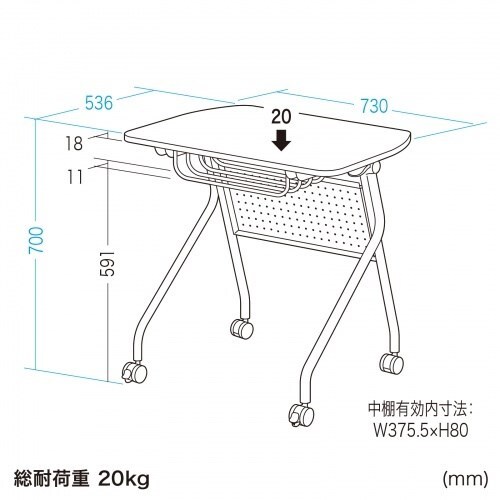 ●中棚が付属し、資料やペンケースなどを置くことができます。