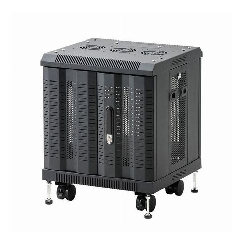 小型機器などをマルチに収納できる全面メッシュパネルの鍵付きラック。高さ550mmタイプ。