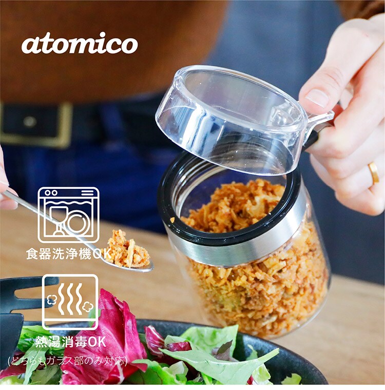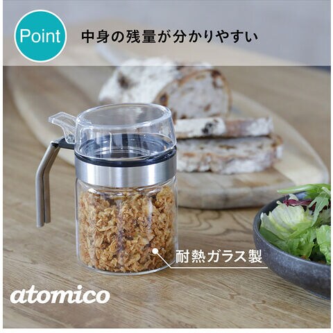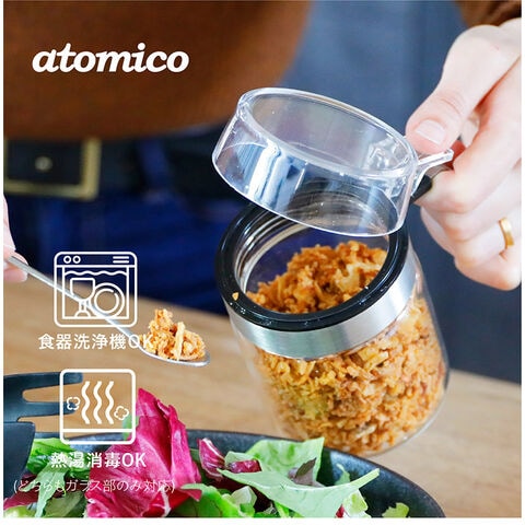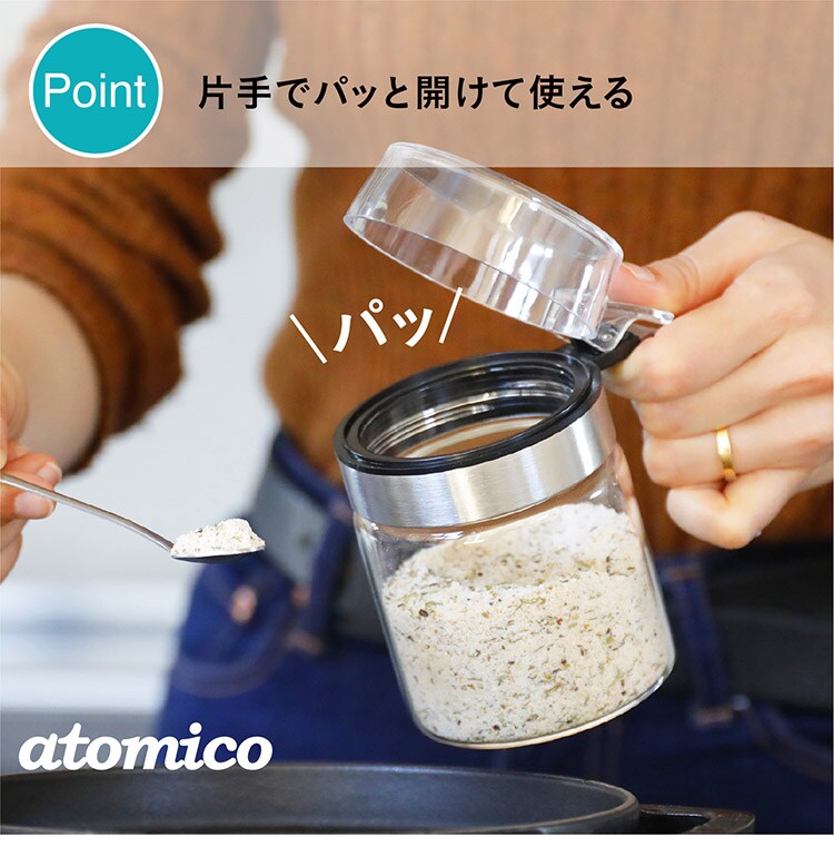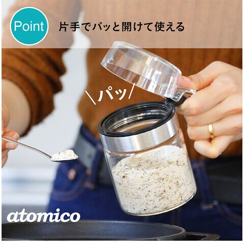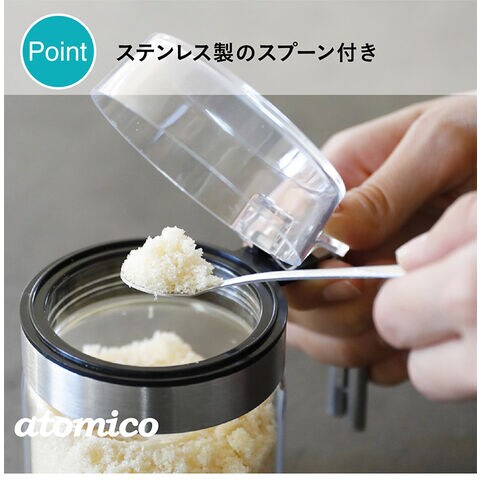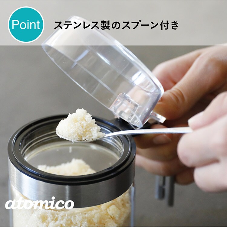 耐熱ガラス調味料ポット シービージャパン アトミコ 250ml スプーン付き 食洗機対応 調味料入れ ワンタッチ開閉 保存 容器 卓上 キッチン 塩 砂糖 小麦粉 片栗粉 シンプル おしゃれ【送料無料】