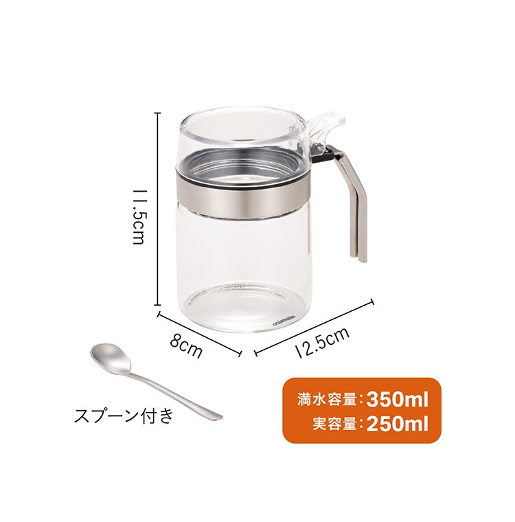 ・素材:[本体]ほうけい酸ガラス、[フタ]ポリスチレン樹脂、ステンレス鋼[ハンドル部]ステンレス鋼、ABS樹脂、[スプーン]ステンレス鋼