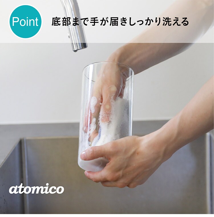 ・底部まで手が届くため、しっかり洗浄でき、衛生的に使用可能。
