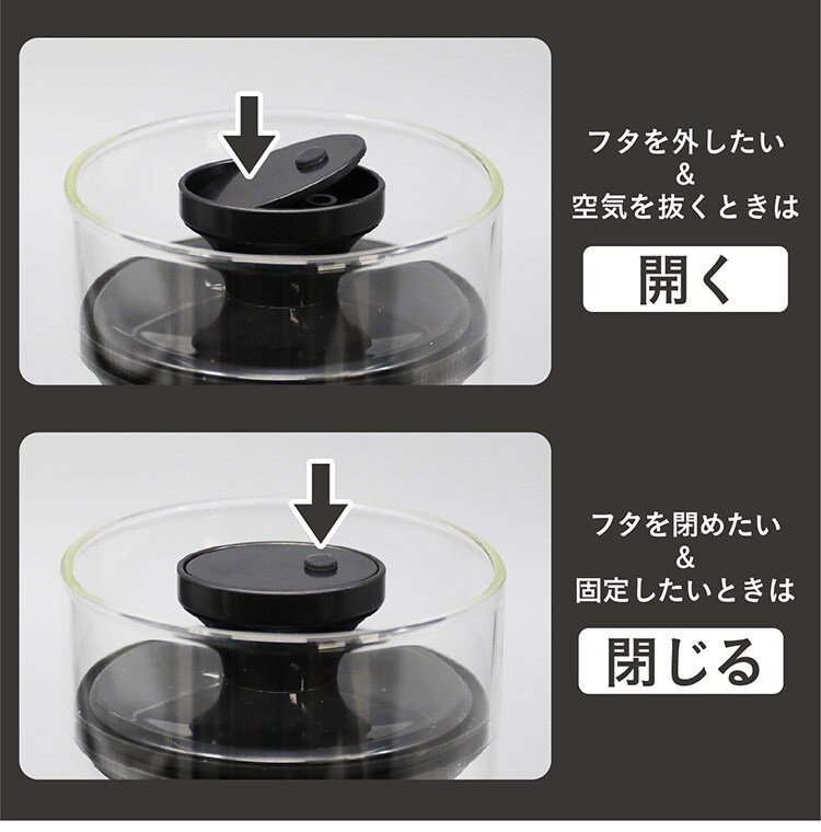 ・密閉設計により、余分な空気を抜いて食材を長持ちさせることが可能。
