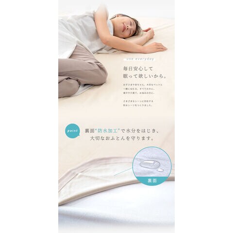 大切なおふとんをまもる、綿100%の防水シーツ。 お子様のおねしょ対策や保育園用はもちろん、介護用や大切なペットにもおすすめです。