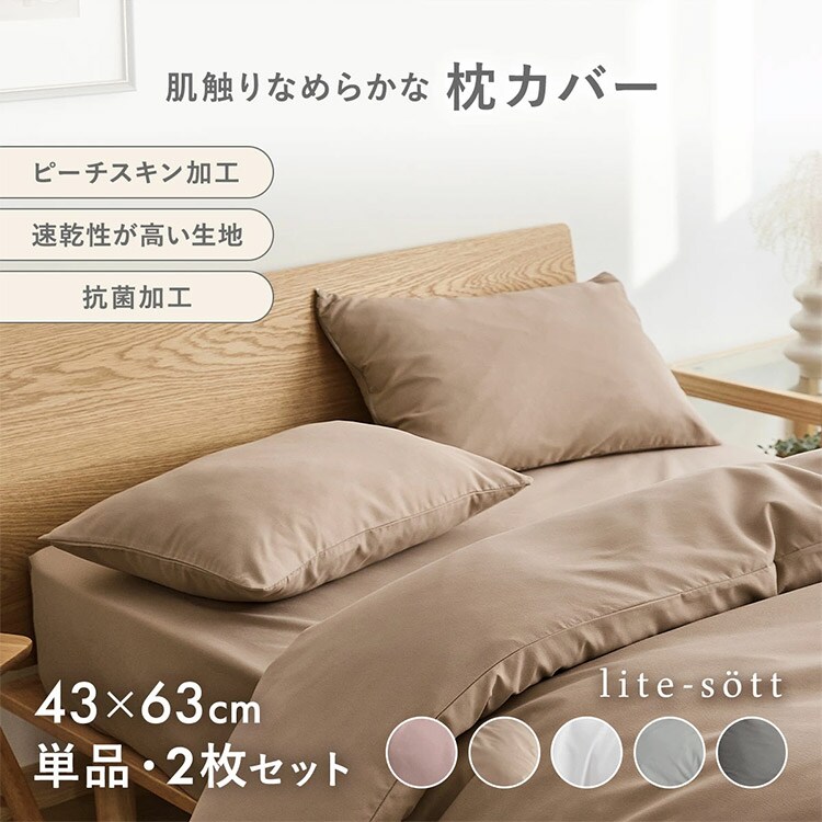 2枚セット lite-sott リテソット しっとりやわらか 枕カバー 43×63cm おしゃれ ピローケース まくらカバー 寝具 抗菌 抗菌加工 ピンク グレー ホワイト ベージュ【送料無料】
