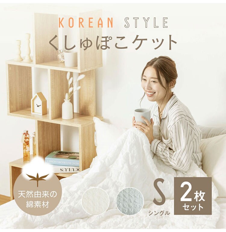 【2枚セット】 くしゅぽこケット シングル 白 綿100% ブランケット ケット オールシーズン 韓国 赤ちゃん 肌に優しい ガーゼケット ガーゼ 快適 お手入れ簡単 軽い おすすめ 低ホルムアルデヒド【送料無料】
