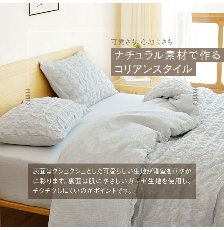 【2枚セット】 くしゅぽこ韓国風掛け布団カバー ダブル 綿100% 布団カバー 丸洗い 無地 韓国風 オールシーズン 8ヶ所紐付き 肌に優しい 快適 お手入れ簡単 ガーゼ おすすめ 低ホルムアルデヒド【送料無料】
