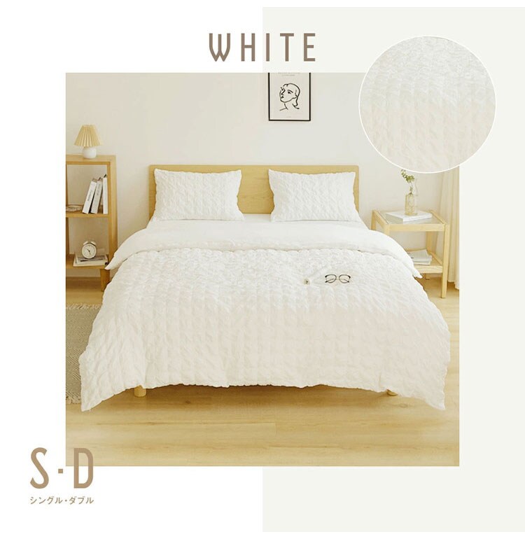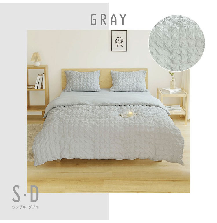表面はクシュクシュとしたかわいらしい生地が寝室を華やかに彩ります。