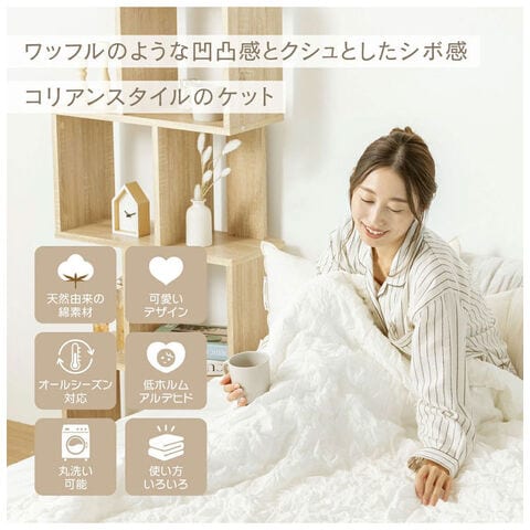 季節を問わず使え、お手入れ簡単で清潔に保てるケットです。