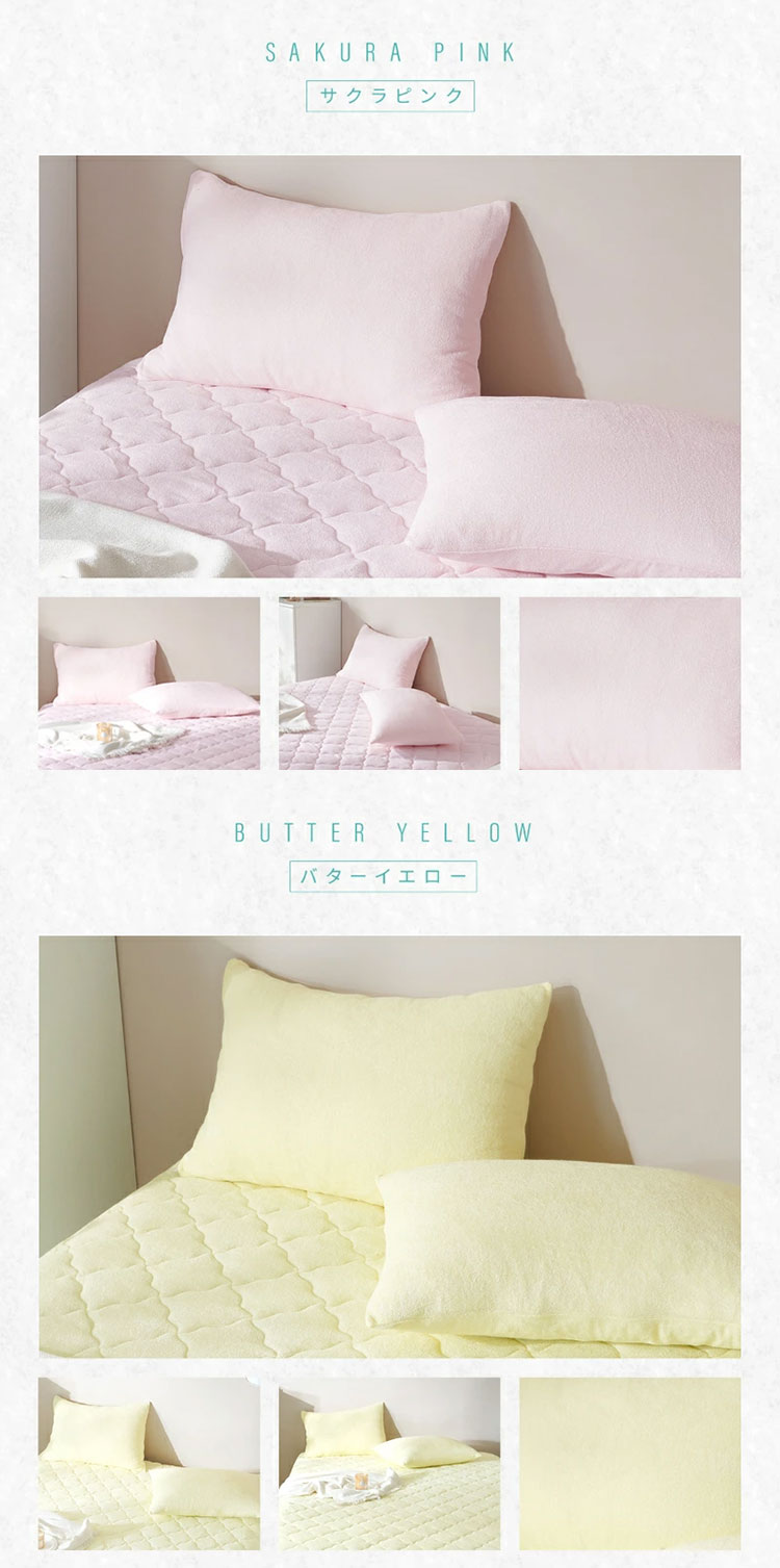 平面的な生地のまくらカバーよりべたべたしづらく、吸水性にすぐれています。