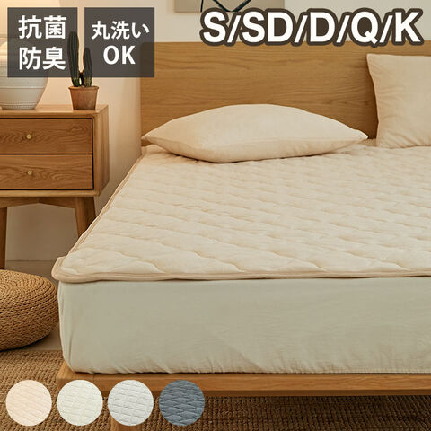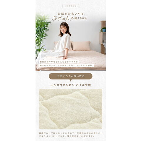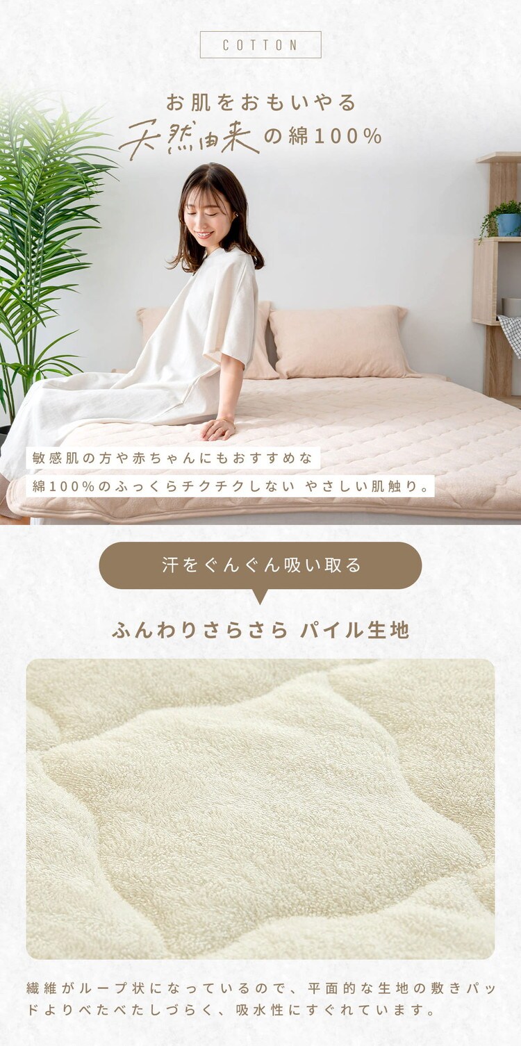 敷きパッド 綿100% ゴムなし シングル セミダブル ダブル パイル地 抗菌 防臭 洗える 低ホルム 置くだけ ベッドパッド おしゃれ かわいい 新生活 シンプル コットン オールシーズン シーツ 敷布団 マットレス クイーン ワイドキング【送料無料】