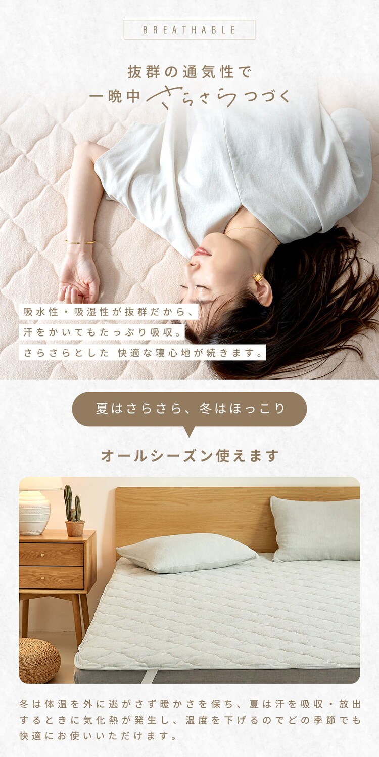 暑さや湿気が気になるシーズンも大活躍!さらさらとした快適な寝心地が続きます。