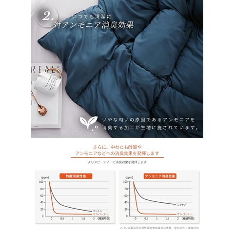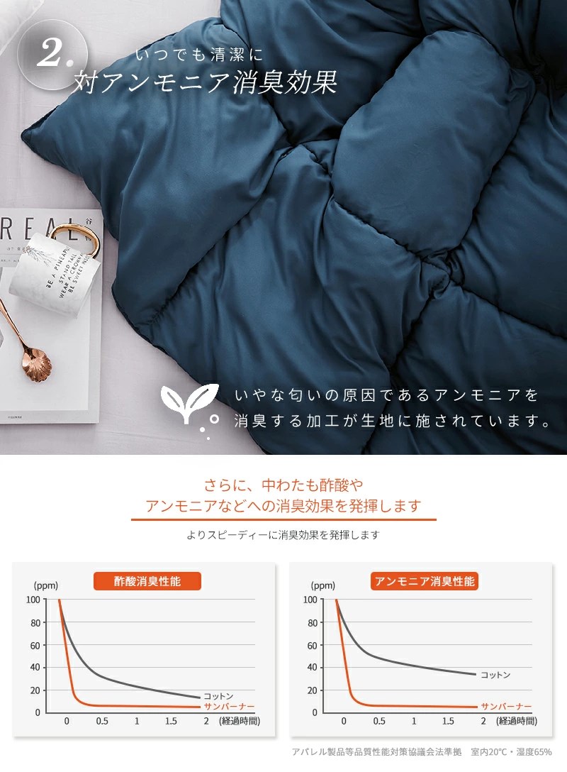ふとんの内側からじわじわと発熱し、しっかり保温。