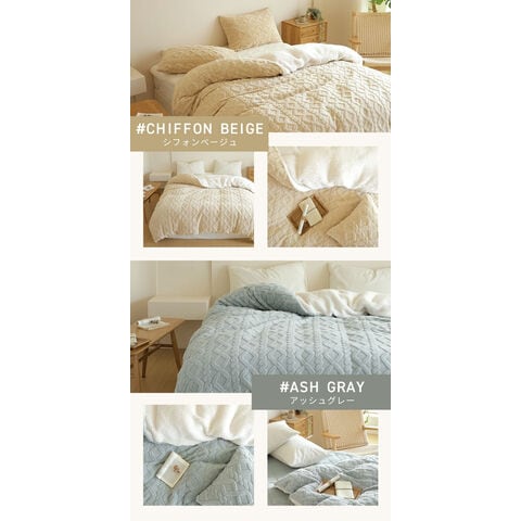 今年の冬のイチオシ、「ケーブルボア」を大胆にあしらった掛け布団カバーが新登場!いつもの寝室に置くだけで、とびっきりの空間に。