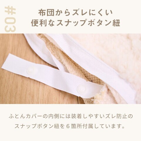 ケーブルボアの裏面は、もこもこと羊のような肌触りのシープボア。癒される肌触りと暖かさに優れた2つのボアを組み合わせ、掛け布団カバーにしました。