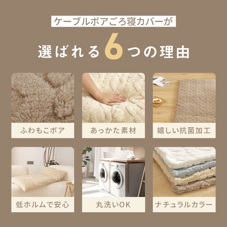 今年の冬のイチオシ、「ケーブルボア」を大胆にあしらったごろ寝カバーが新登場!いつもの部屋に置くだけで、とびっきりの空間に。