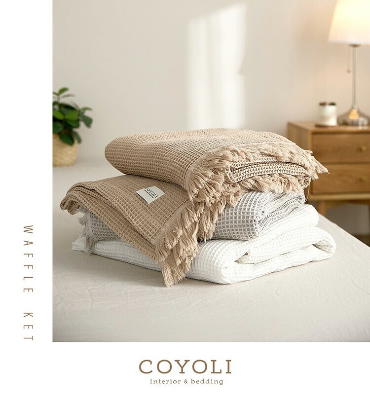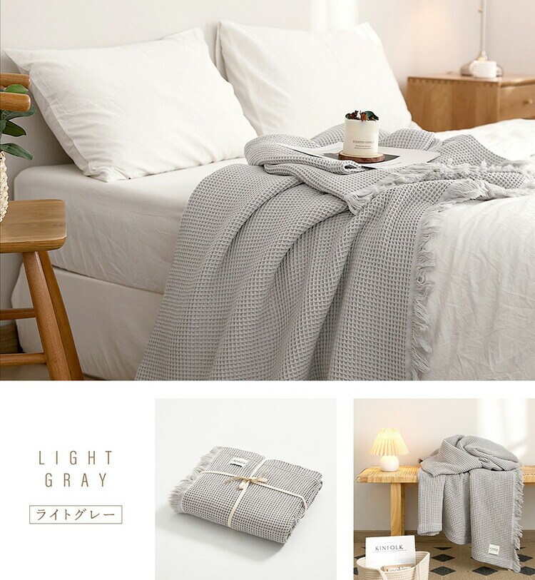 ワッフルケット シングル フリンジ付き かわいい 韓国インテリア 綿100% タオルケット ブランケット 大判 夏用 洗える 肌掛け布団 夏掛け布団 マルチカバー【送料無料】